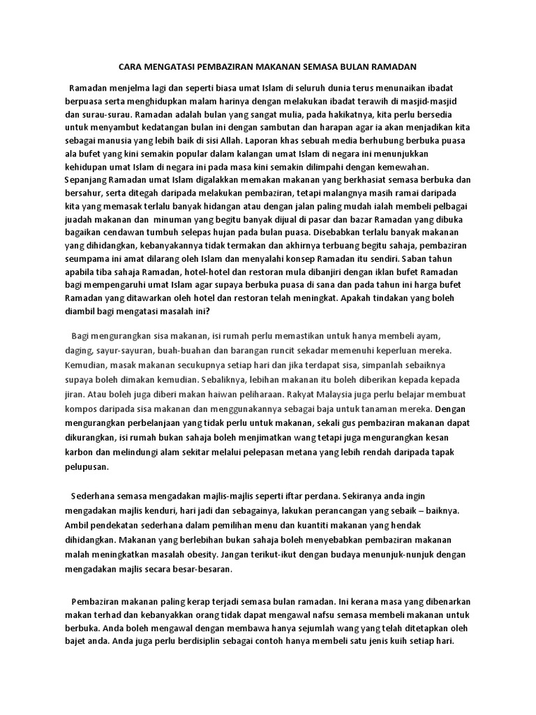 Cara Mengatasi Pembaziran Makanan Semasa Bulan Ramadan Pdf